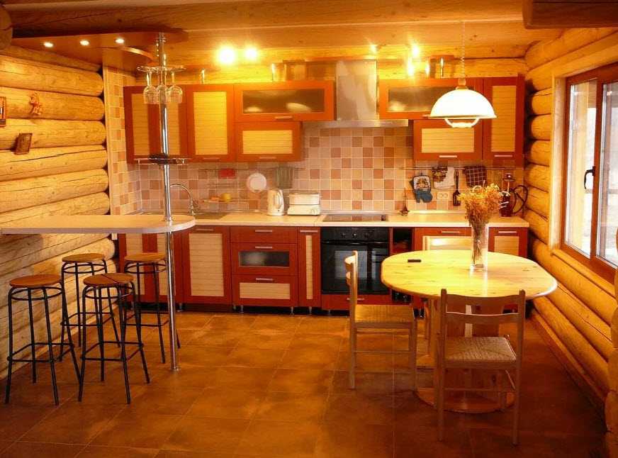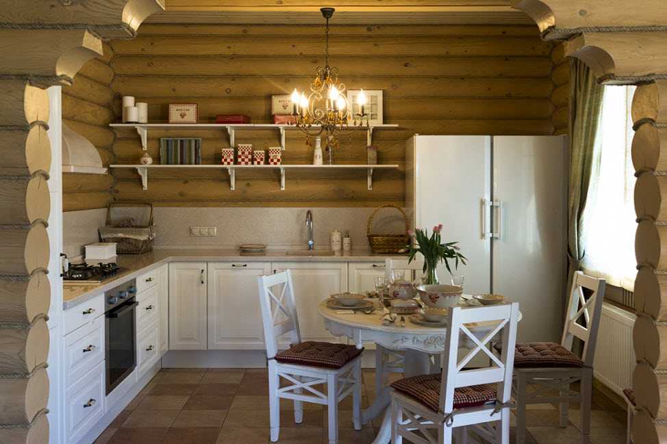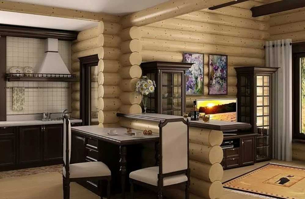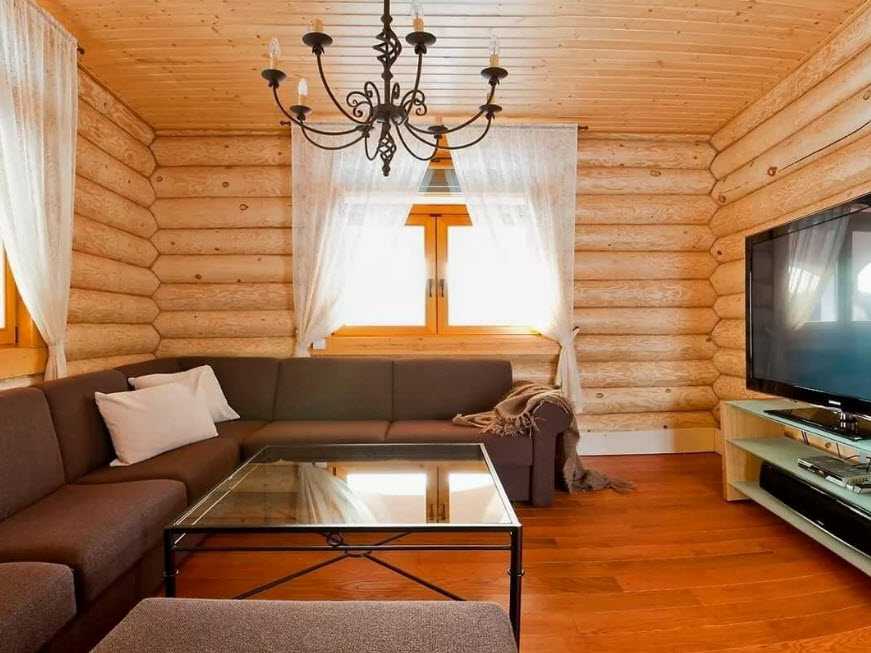 При разработке интерьера загородного дома из дерева (бруса или бревен), сначала нужно подумать об внутренней отделке стен. Деревянные дома довольно необычные, поэтому не лишним будет подчеркнуть их неповторимость. К примеру, классический вариант предполагает только шлифовку и покрытие стен лаком, а некоторые другие стили дизайна требуют особенной технологии обработки. Так, если вы захотите оформить дизайн одной из комнат в стиле хай-тек, то вам может потребоваться выровнять стены, скрыв дерево под слоем штукатурки, гипсокартона или панелей.