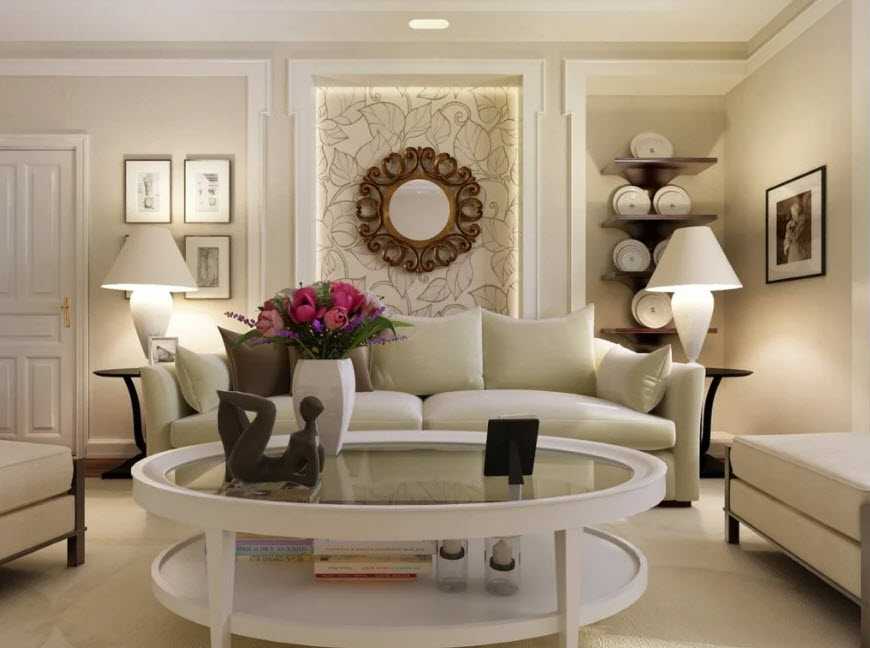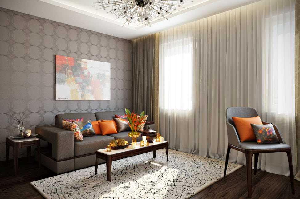 Часто люди среднего достатка заблуждаются в том, что большому помещению нужно гораздо больше наполнения и различных аксессуаров. Любой профессиональный дизайнер скажет, что это не так. Высшей степенью сложности является простота. В больших помещениях используются более габаритные предметы, а в маленьких, наоборот. В любой комнате хорошо работает сочетание крупных и мелких элементов.