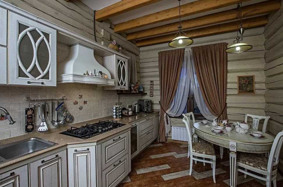 Деревянный дом из бруса или бревен отлично будет смотреться в любом деревенском стиле.