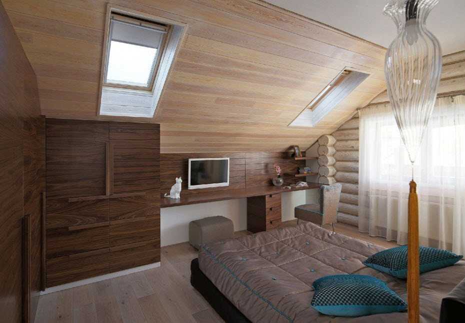 Мансарда добавляет преимущество дому в виде дополнительной жилой площади. Здесь можно обустроить детскую комнату или спальню. Особенный вид придает мансарде покатость крыши и окна, которые могут быть любой формы и размера. Ящики под свод крыши будут экономить место, здесь же можно устроить игровую с гамаком, брусьями и настольными играми.