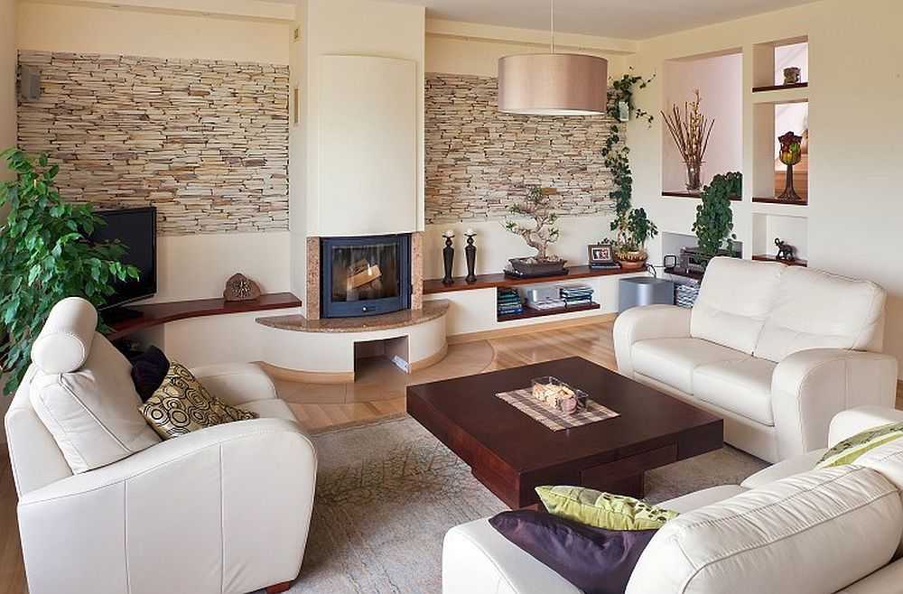 Обзор идей использования декоративного камня для оформления гостиной
