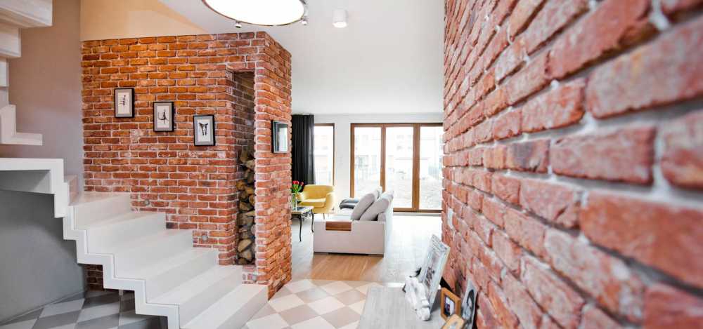 Подобная кладка, только из необработанного кирпича, активно задействована в гранж-интерьерах, которые предусматривают лаконичность обстановки и натуральные материалы.