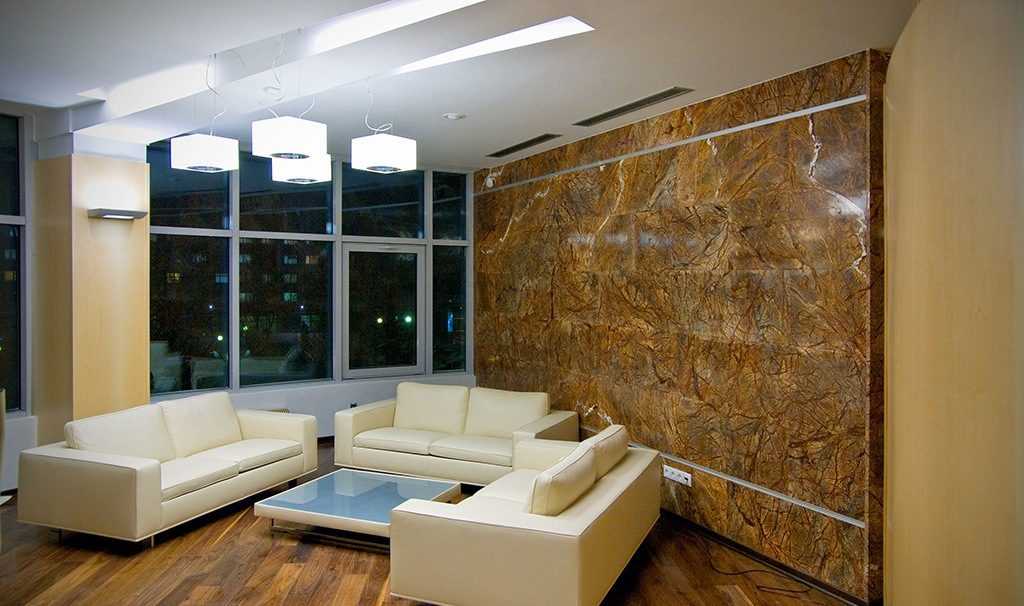 Натуральный камень в интерьере гостиной