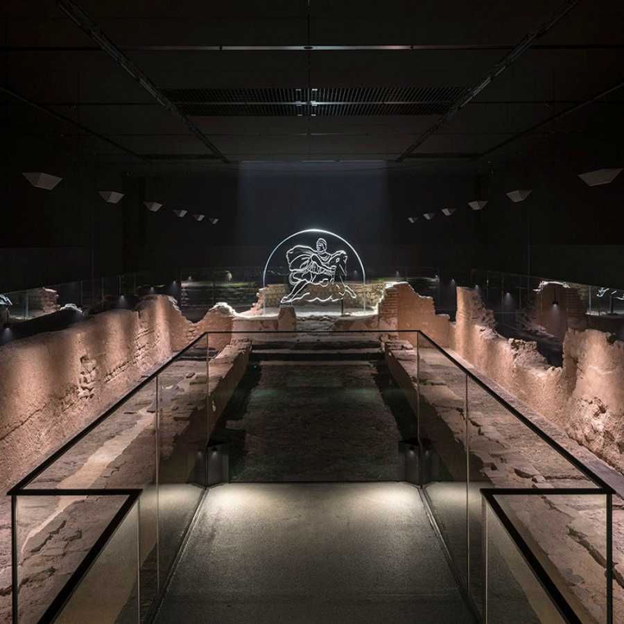 Интерьер музея, спроектированный архитектурной фирмой Davis Brody Bond, представляет собой темную комнату с обзорной галереей с двух сторон и платформой, подвешенной над нефом. Попадая в реконструированный храм Митры, посетители словно растворяются во времени. Дымка, освещенные световые проекции сцены, в которой Митра убивает быка, звуковое сопровождение с пением, колоколами и звуками рога — все спецэффекты направлены на создание загадочной атмосферы прошлого и эмоционального настроения для всех обозревающих храм.
