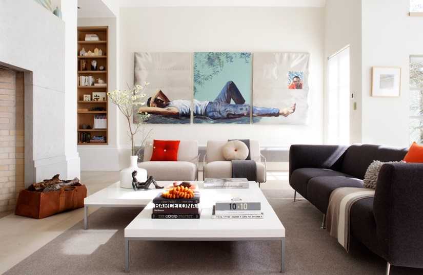 Например, модульные картины в интерьере гостиной чаще всего выполняются в стиле импрессионизм или арт-модерн. Наиболее яркие и выразительные картины будут уместны именно в просторных и светлых гостиных.