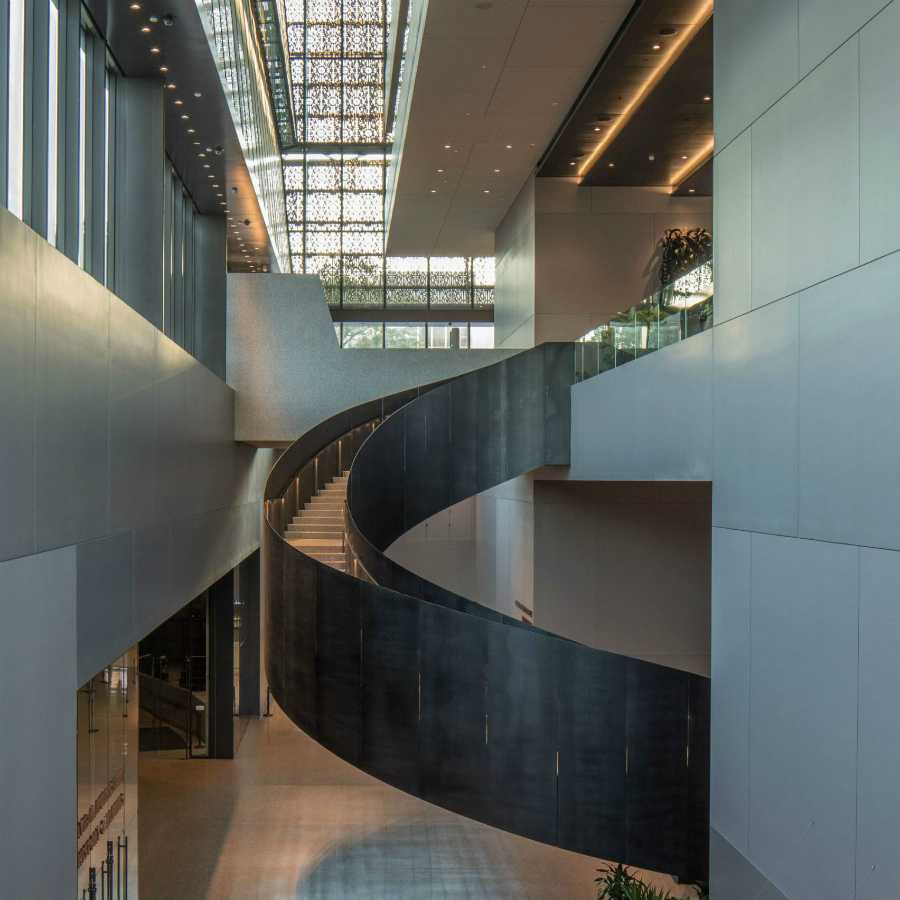 Интерьер музея Аджайя выполнен из бетона, дерева и стекла. Его галереи имеют в своем дизайне высокие потолки и бетонные колонны, которые придают всему пространству индустриальный вид.