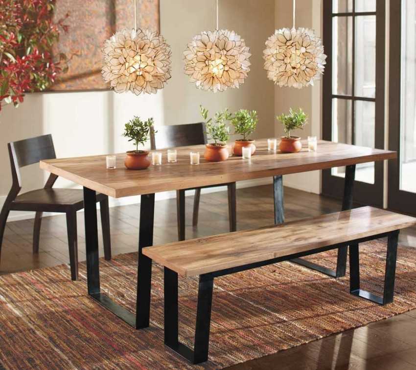 В классическом или современном стилях окажется уместным кованый обеденный стол – его столешница может выполняться деревянной или стеклянной, а великолепие металла демонстрируют эффектные ножки.