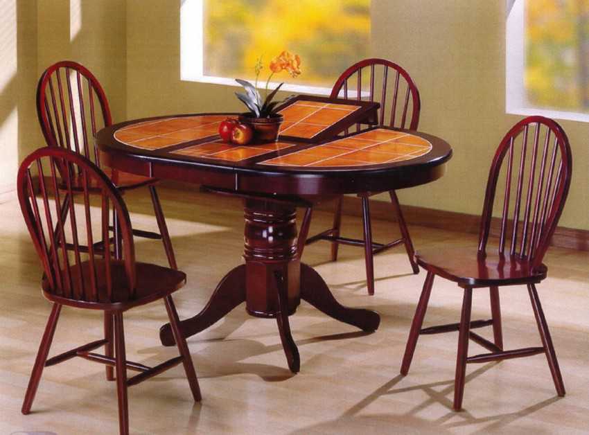 Экологичный сруб дерева не относится к бюджетному варианту. Обычно деревянные модели встречаются у счастливых обладателей больших домов, оформленных в классическом или кантри стиле. Такой стол жалко складывать. Часто их спутники – большие резные ножки. Природный материал редко окрашивают, его естественный цвет смотрится богато и стильно. Дерево визуально утяжелит маленькие квартиры. Столешницы покрывают лаком и пропитывают специальным средством от сырости. Деревянная мебель, обычно, имеют форму квадрата, круга, прямоугольника.