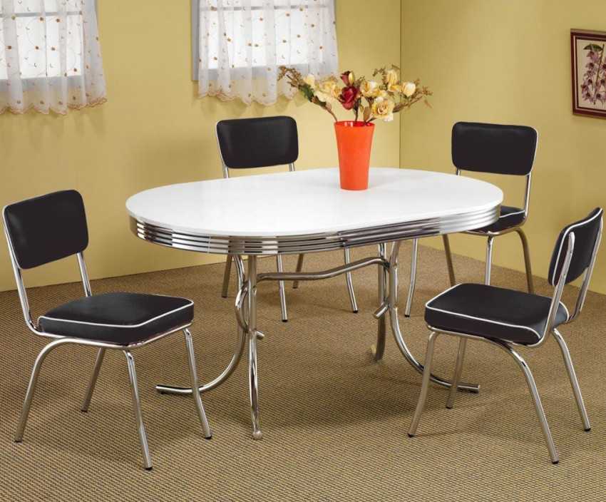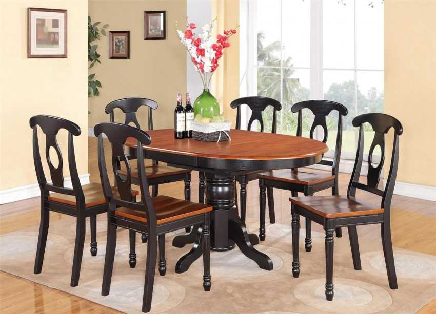 форма. Самый простой вариант – прямоугольный стол, который можно придвинуть к стене или поставить по центру комнаты. Компания из 6 человек спокойно разместится за столом 150*90 см, а стол 2*1,1 м станет хорошим решением, если за обедом или ужином регулярно собирается 7-8 человек. Если место позволяет, то можно взять стол еще больше, но это вариант, если у вас есть отдельная столовая комната. Квадратные столы 90*90 см при размещении посередине кухни позволят поместиться 4 обедающим. Не менее популярными стали круглые столы, которые выглядят более воздушно. Кроме того, они менее травмоопасны ввиду отсутствия углов, да и при той же площади поверхности, что и у прямоугольного, позволяют разместить большее количество людей. Однако, трудно представить себе большой круглый стол – трапезничающие будут находиться слишком далеко друг от друга, так что максимальный комфортный диаметр – 1,5 м. Компромиссным решением становятся овальные столы, которые объединяют преимущества прямоугольных и круглых;