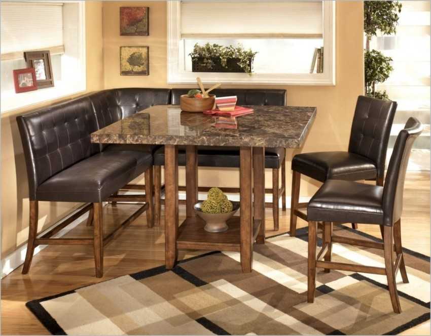 Мягкими могут быть не только сиденья, но и спинки. Для этого лучше отдавать предпочтение материалам из кожи, кожзама или текстиля. Ткань на кухне будет непрактична, особенно в случае близкого размещения рабочей зоны.
