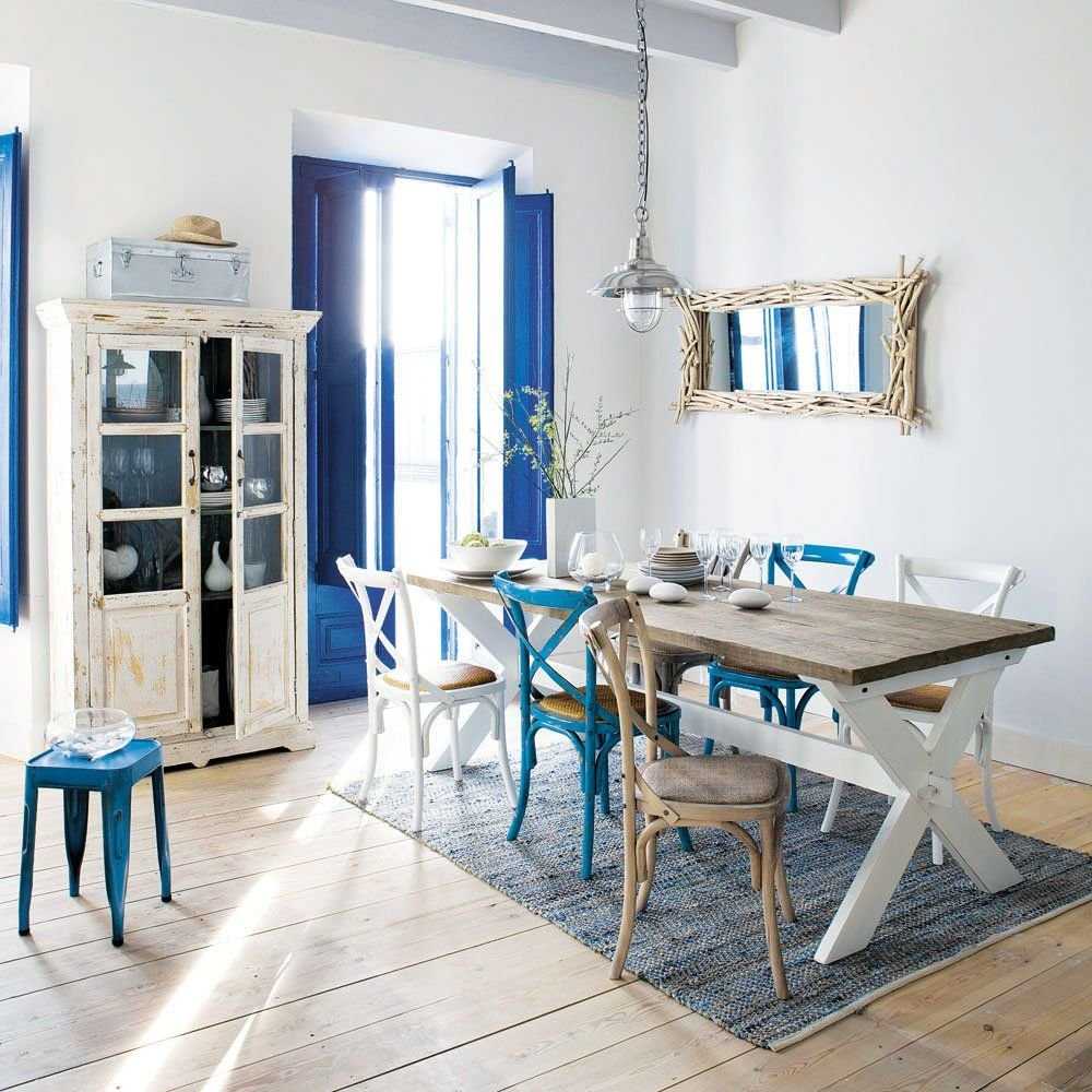 Дом или квартира в средиземноморском стиле имеет дизайн, построенный на контрастах. Одной из необычных особенностей является чередование светлых и темных оттенков. Например, при расстановке мебели желательно соблюдать контрастность. Для этого можно использовать необычный прием — окрашивать предметы меблировки одного гарнитура в разные оттенки.