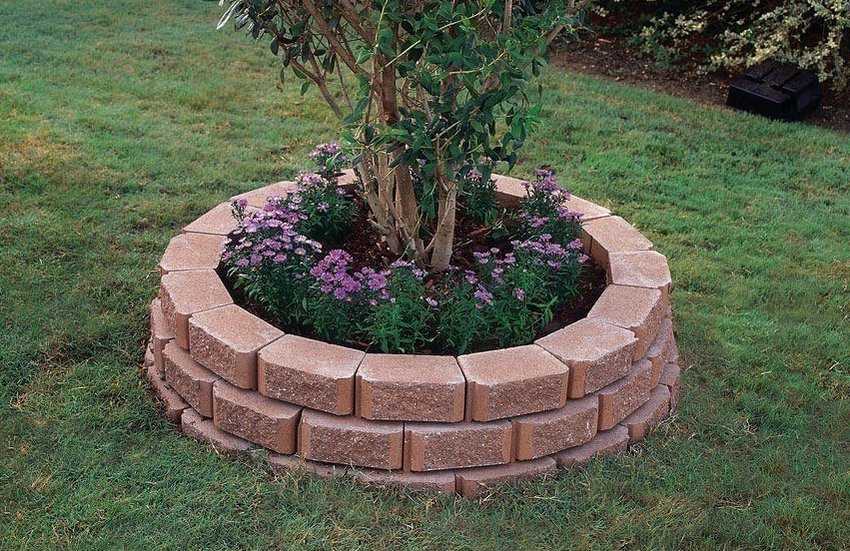 Сделать цветник на даче можно возле дерева. Они уже относятся к разряду садовых. Не хотите, чтобы он был банальным? Придумайте интересную ограду.