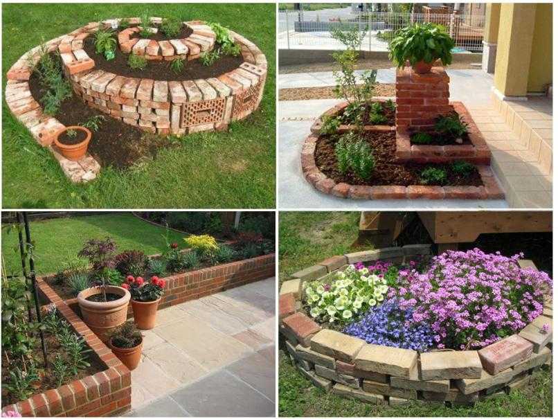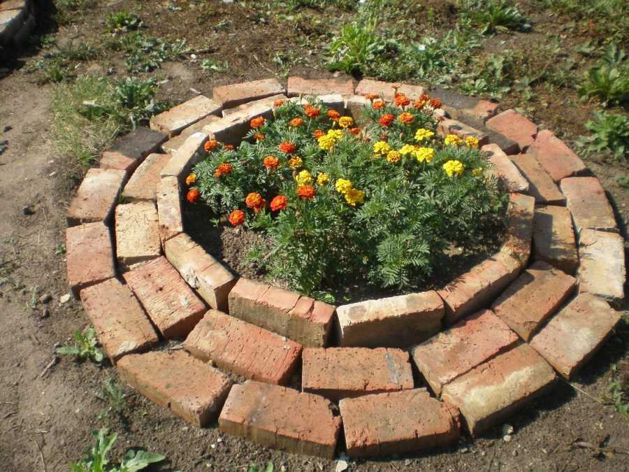 Укладка камней может быть ровной, зигзагообразной либо в виде мозаики. К тому же кирпич позволяет регулировать высоту клумбы или бордюра. Очень красиво смотрится клумба в виде спирали. Она станет эффективным украшением любого участка. На нее можно высадить не только любимые цветы, но и разбить миниатюрный огородик из пряных растений.