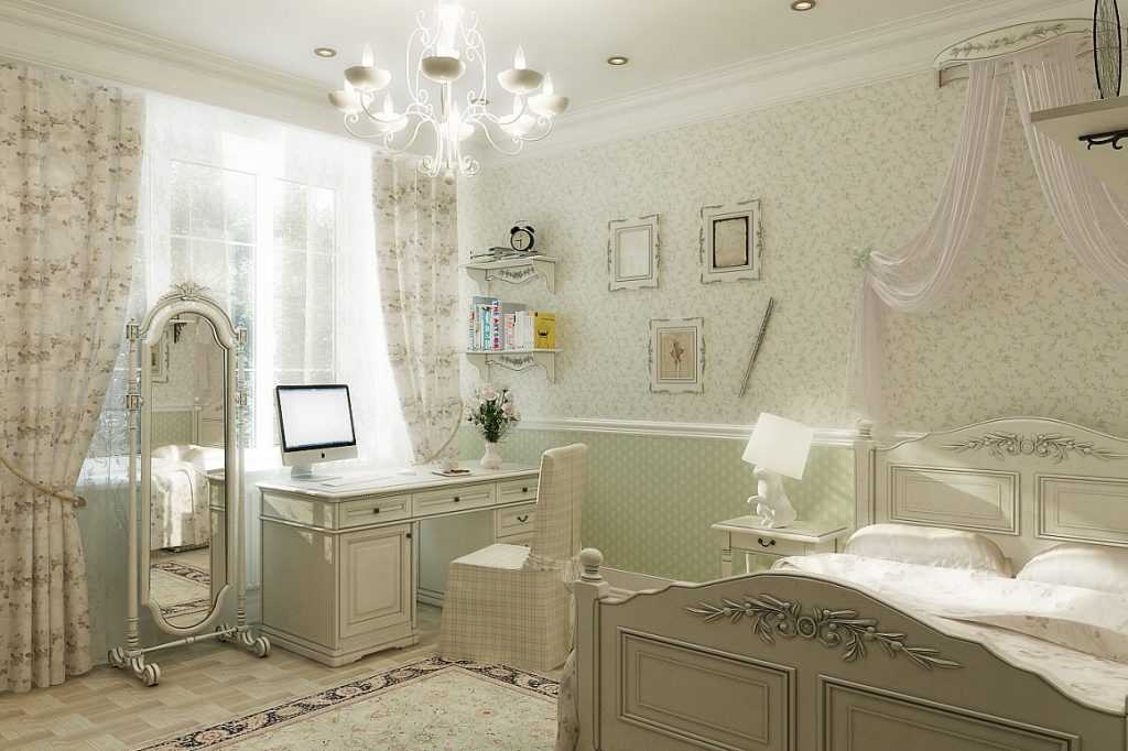 - Классический. Мебельные наборы этого стиля выполнены преимущественно из натуральных пород древесины. Как правило, предметы интерьера сделаны в светлых тонах, имеют резьбу и позолоту. Такой дизайн оценят дети школьного или подросткового возраста.