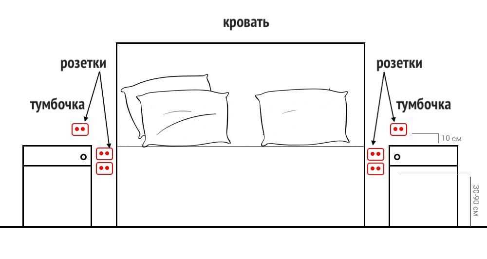 Розетки в спальне у кроватиИсточник mystroypro.ru