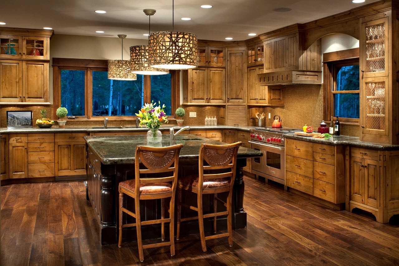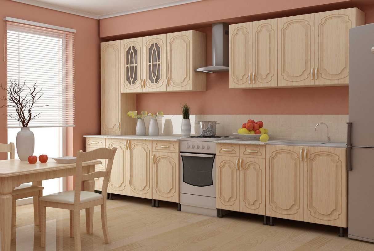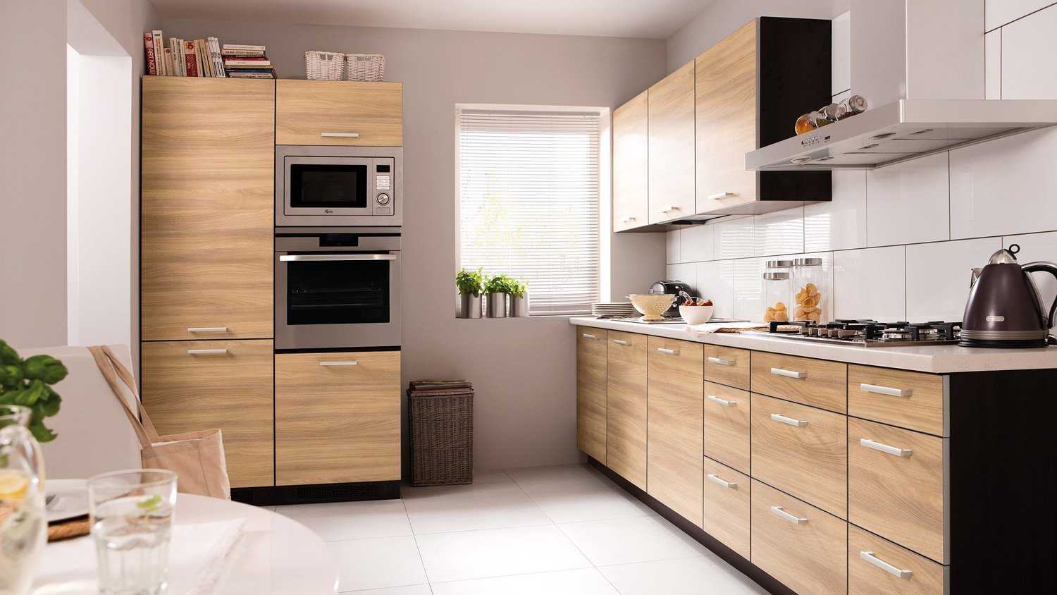 Начнем с материала каркаса, который скрыт от наших глаз. Деревянные кухни — это кухни представительского класса, которые отличаются экологичностью и высоким качеством. Но потребует такой материал в сложных условиях кухни особого подхода, так как плохо не переносит действие влаги.