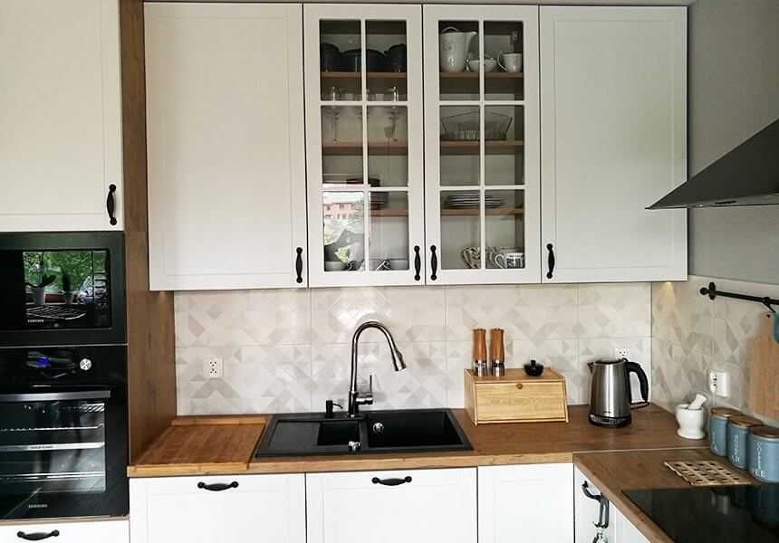 Огромная роль в организации кухонного пространства принадлежит качественной фурнитуре. Эти элементы точно нельзя выбирать только по внешнему виду. У ручек и петель должно быть надежное крепление, а модули должны стоять на ножках, которые можно отрегулировать по высоте. Ответственный производитель гарантирует, что стекла не выпадут из пазов, кромка будет гладкой, и все детали будут иметь надежное крепление. Столешница – это основная рабочая поверхность, поэтому при выборе нужно быть особенно внимательным. Ее внешний вид должен соответствовать общему дизайну всего интерьера, кроме того, необходимыми качествами являются: