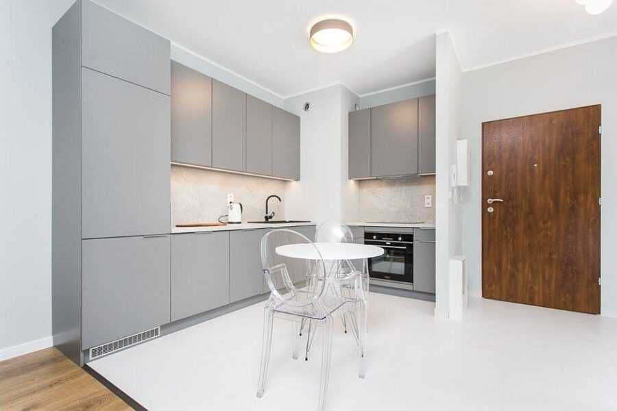 Качественная фурнитура, грамотная система хранения, ручки и механизмы — важная составляющая гарнитура для маленькой кухни.