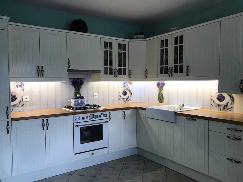 Рабочая поверхность – во многих современных гарнитурах уже можно установить галогенные или флуоресцентные лампы, которые отлично справляются с освещением столешницы и раковины. Когда нет отверстий, вы можете вручную сделать их в нижней части шкафов, установить плоские люминесцентные лампы или прикрепить светодиодную ленту. Если вы планируете установить стеклянный экран на кухонный фартук, вы также можете установить подсветку в нескольких режимах работы.