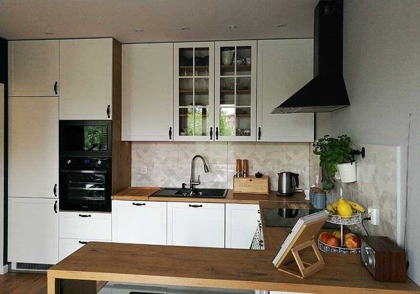 - При расчетах нужно предусмотреть всю необходимую бытовую технику, включая встроенную и мелкую. Решите вопрос с расположением труб, вытяжки и розеток.