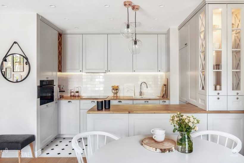 Классический стиль уж точно не выйдет из моды, по крайней мере, в ближайшие несколько десятков лет, поэтому такая кухня будет актуальной всегда. Правда, обойдется такое решение владельцу не очень дешево, так как стиль предполагает использование натурального дерева или материалов, максимально приближенных к нему по свойствам и внешнему виду. Такие кухни, как правило, массивные, поэтому подходят для более просторных помещений с высокими потолками и большими окнами.