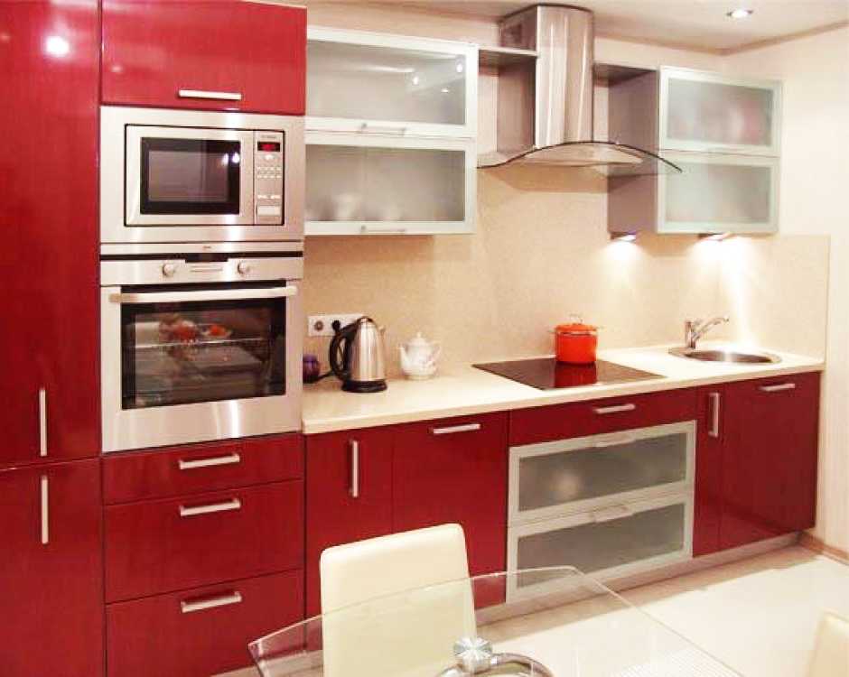 - если кухня слишком узкая, ставить мебель нужно только в один ряд;