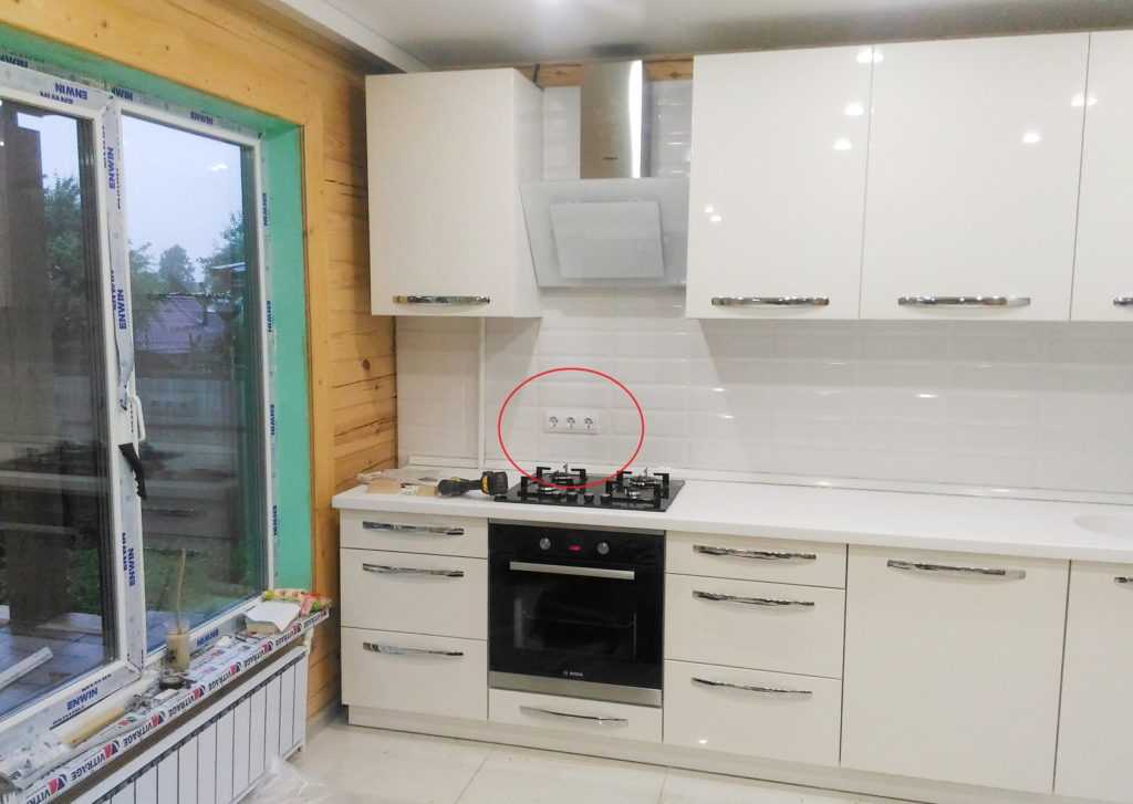 - Размещение электропроводки с четким следованием дизайнерскому проекту – размещение розеток влияет на расположение всей крупногабаритной кухонной техники.