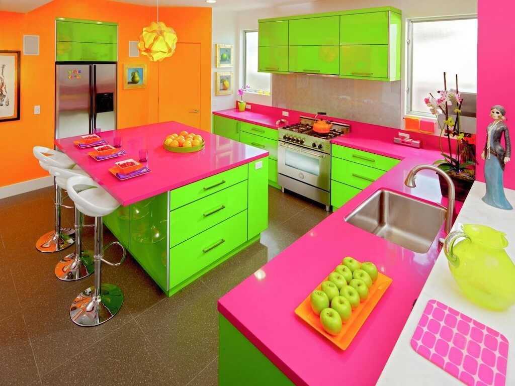 Тона для кухни надо подбирать с особой осторожностью, поскольку в этом помещении проводится много времени, а цвет со временем может надоедать, давить на человека и даже раздражать. Поэтому от смелых решений вроде полностью красной кухни (стены, гарнитур и мебель) стоит отказаться
