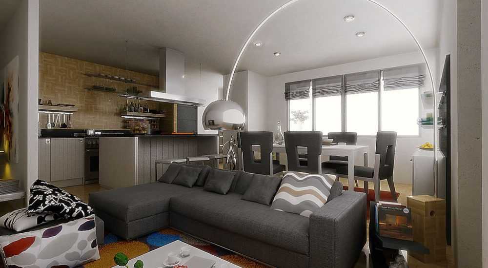 Как правило, молодая пара ведет активный образ жизни, и в то же время ценит уединение и комфорт. Поэтому в общем помещении обычно выделяют гостиную и спальную зону. Кухню, а иногда и прихожую обычно объединяют с общим помещением. Чаще всего однокомнатная квартира для семьи — первая в жизни, дизайн ее хочется создать интересным, и одновременно удобным для жизни.