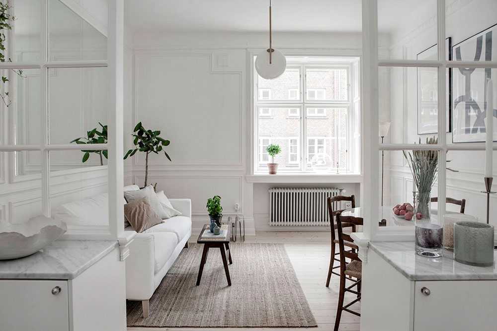 Мы говорили о том, как скандинавский стиль будет отличным выбором для дизайна однокомнатной квартиры, и это не просто так. Самый простой способ создать визуально более просторную квартиру-это привлечь естественное освещение. Да, вы можете добавить встроенное освещение и акцентные лампы. Но абсолютно ничто не работает так же хорошо, как естественный свет.