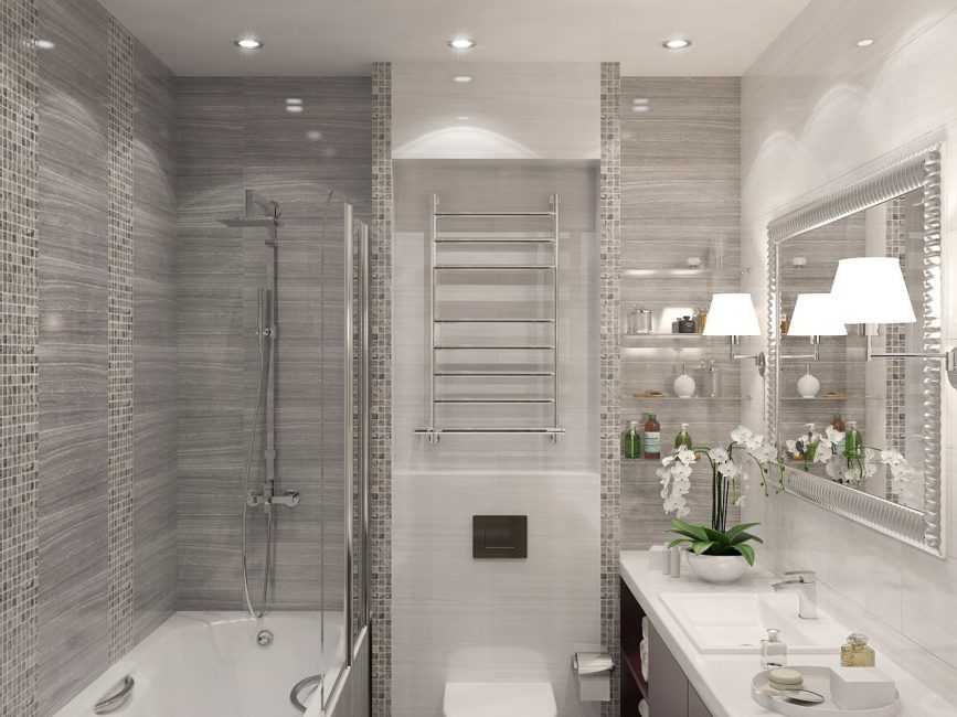 Большое количество отражающих поверхностей увеличивает пространство. В этом помещении нужно хорошее освещение. В идеале несколько источников света. Разместите в шахматном порядке точечные светильники – пространство расширяется. Установка вдоль стен раздвигает границы.