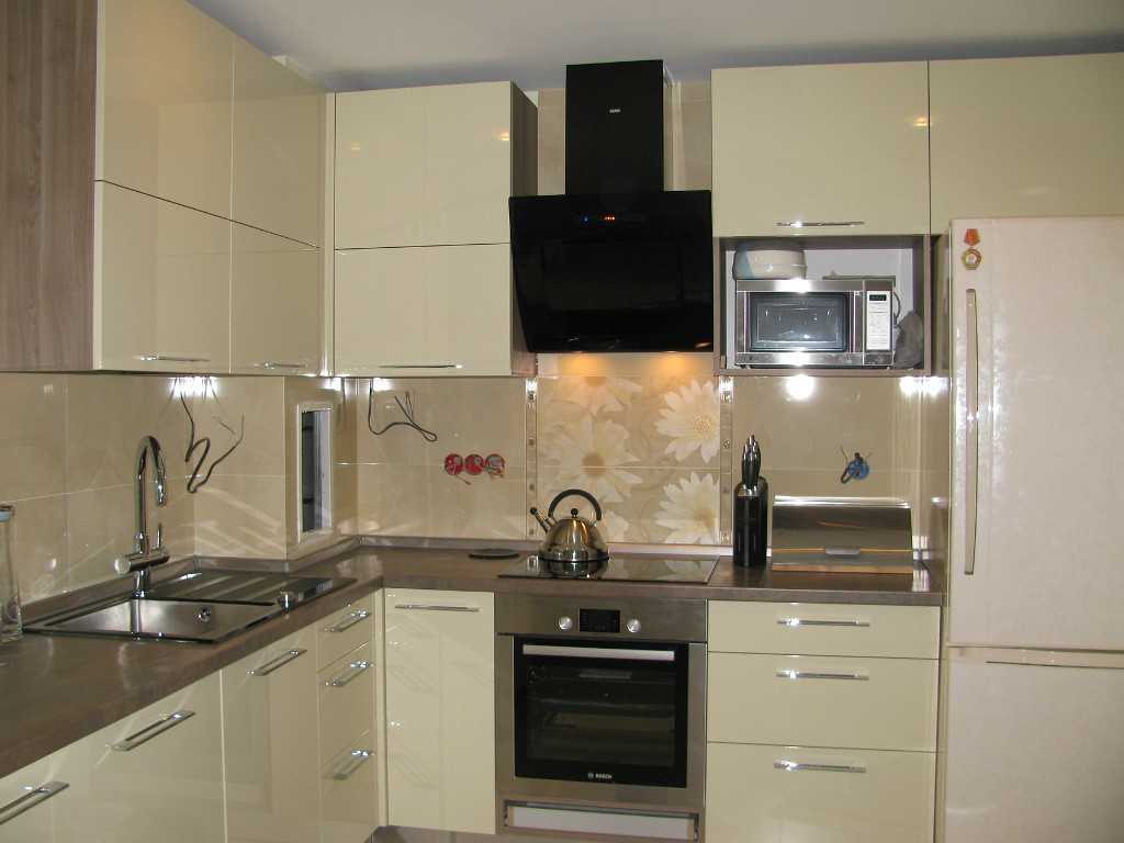 Бытовая техника на маленькой кухне должна быть встроенной. Это значит, что все приборы, которые можно спрятать за фасадами, нужно за ними спрятать. Микроволновая печь, электроплита с духовкой, холодильник, посудомоечная машина, кухонный комбайн — все это должно быть грамотно встроено в гарнитур. Возможно, от некоторых бытовых приборов придется отказаться — к примеру, установить на кухне либо духовку, либо микроволновую печь.