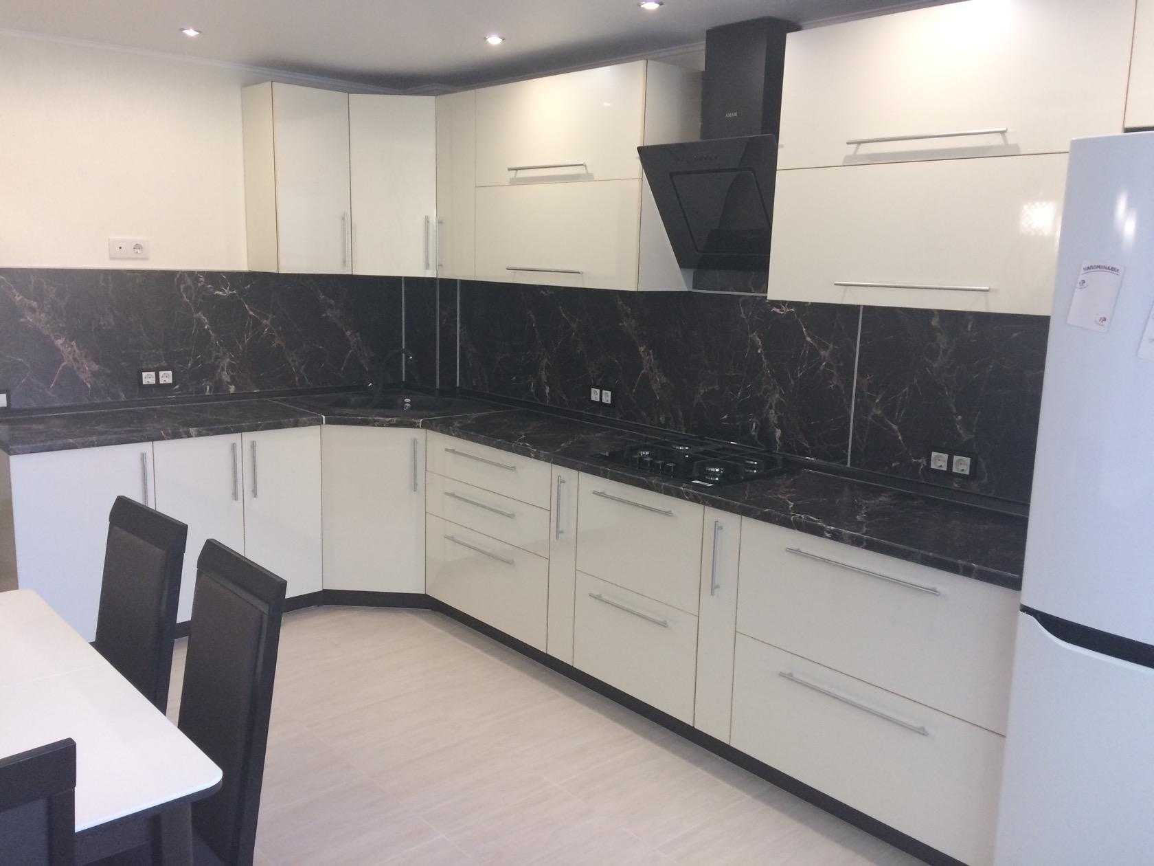 Также на черно-белой глянцевой кухне модным полом считается белый с черным узором или со стеклянными нишами в полу черного цвета.