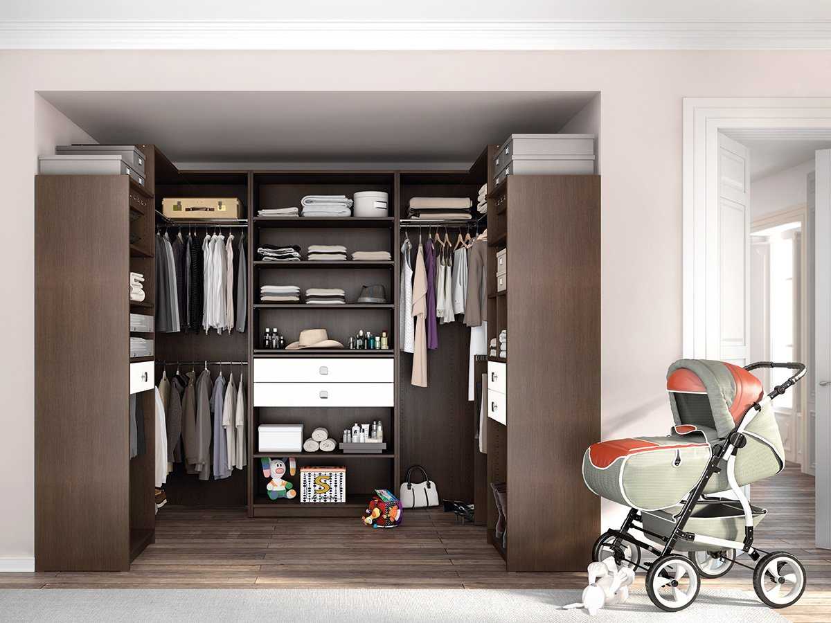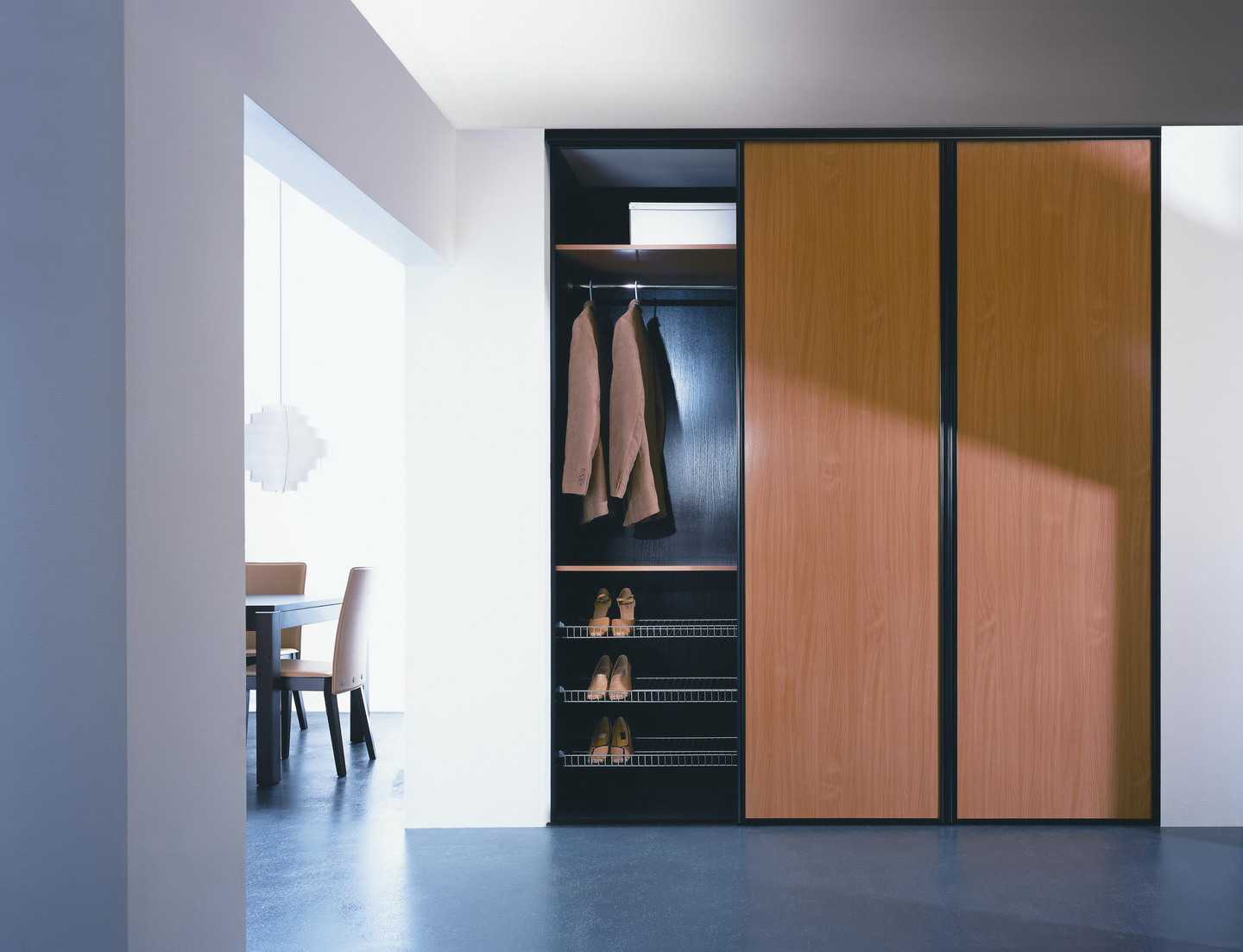 — Одного или нескольких шкафов с полками и штангами для вертикального размещения курток, пальто и другой одежды. На верхних полках могут храниться спортивные принадлежности, а нижний отсек предназначается для коробок с сезонной обувью.