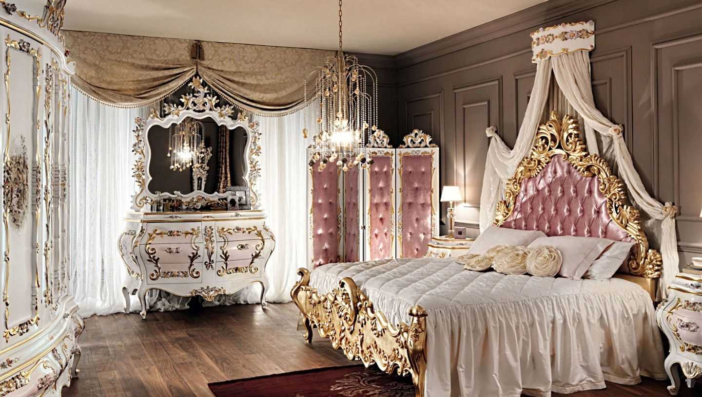 - Классика — стиль на все времена. Главное — благородство и изящество. Каждая деталь становится произведением декоративного искусства. Центр композиции — высокая кровать из натурального дерева с инкрустацией или резьбой. Окружают ее тумбочки и комоды, стулья и бельевые шкафы, кресла, кушетки, козетки, диваны.
