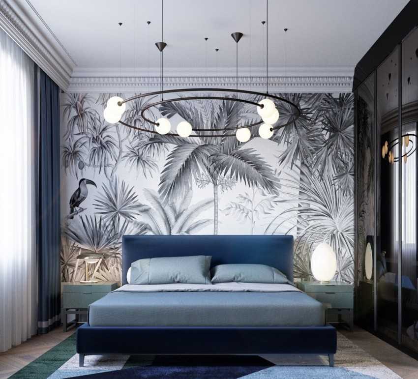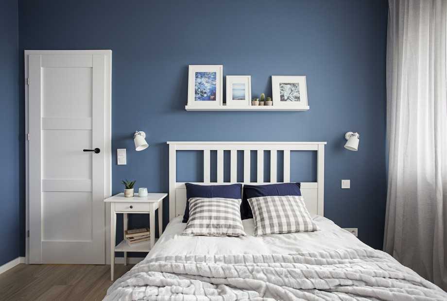 Светло-синий зрительно увеличит небольшую спальню, а насыщенный темно-синий придаст ей элегантности и стиля. Однако стоит помнить, что темно-синий цвет нужно подсвечивать и оживлять аксессуарами, например, золотистого цвета.