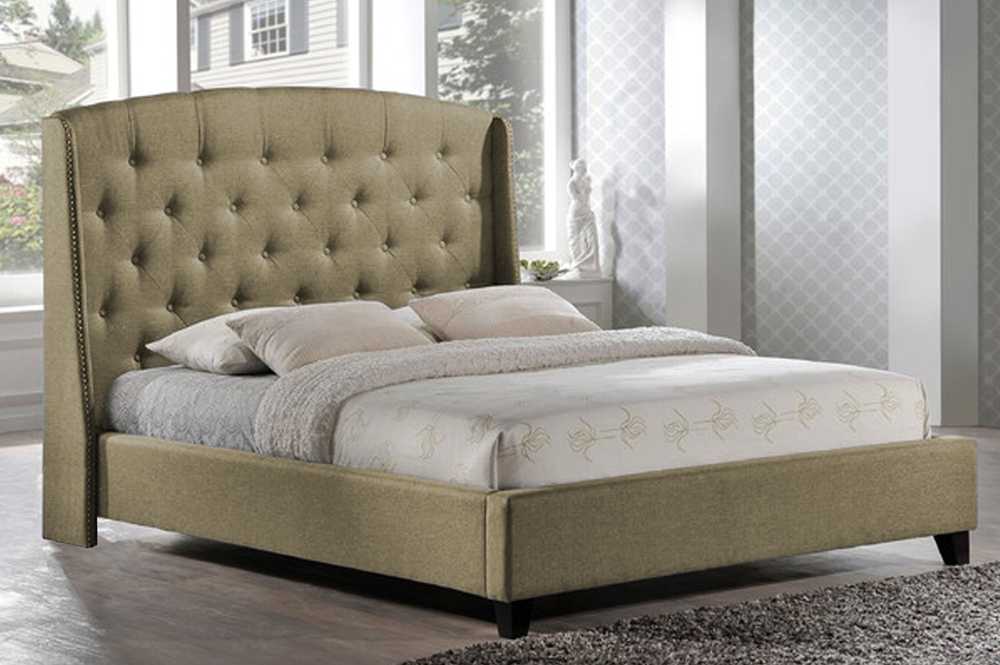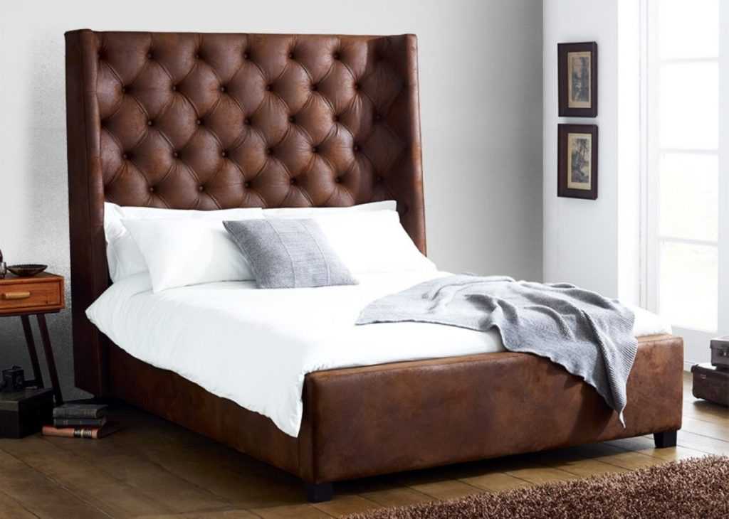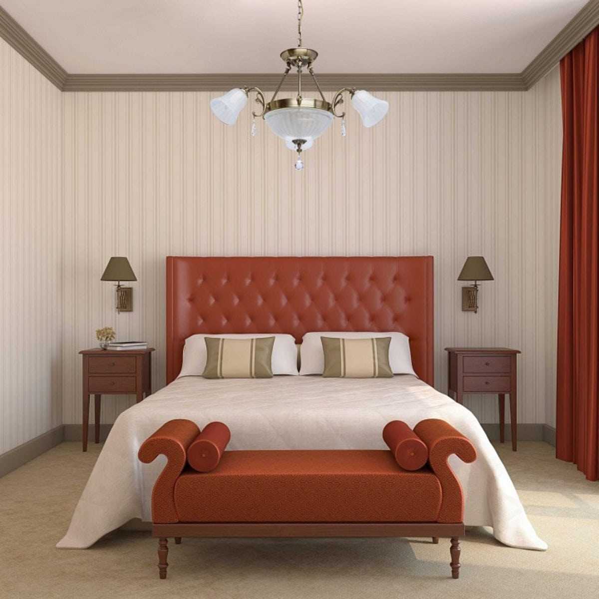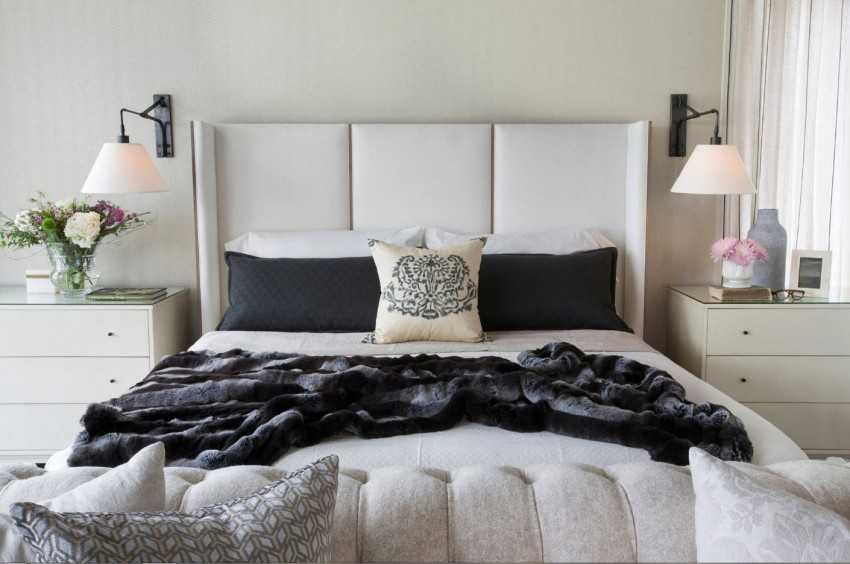 Оттенок изголовья кровати должен вписываться в интерьер спальни.