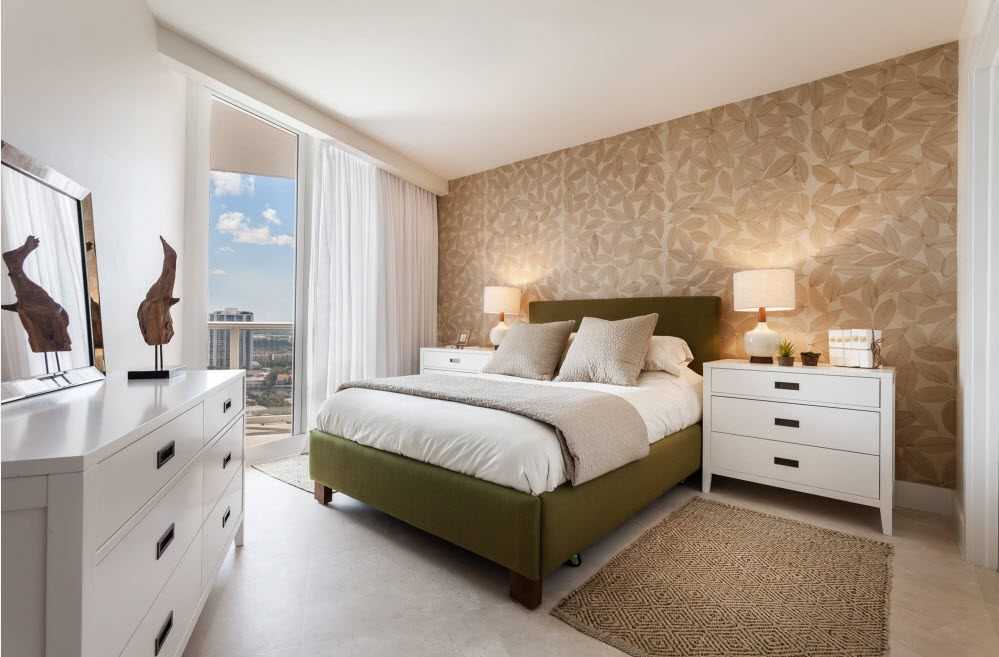 Центральным элементом спальни является кровать, также нередко устанавливаются мягкие кресла, пуфики