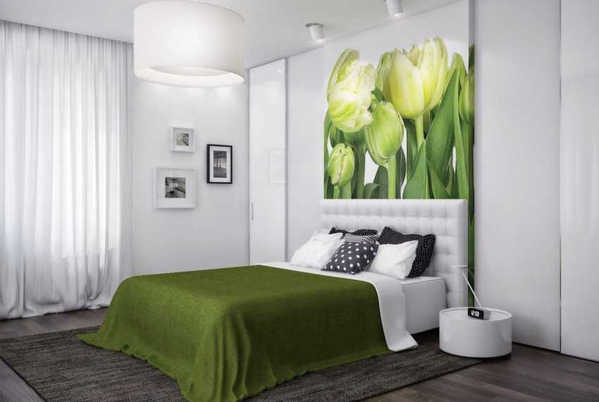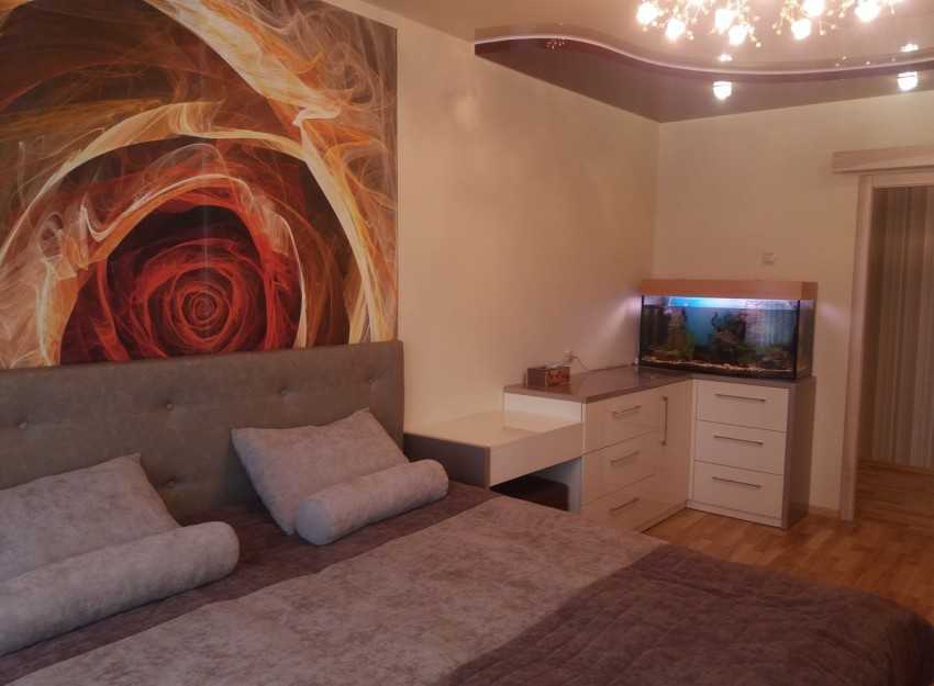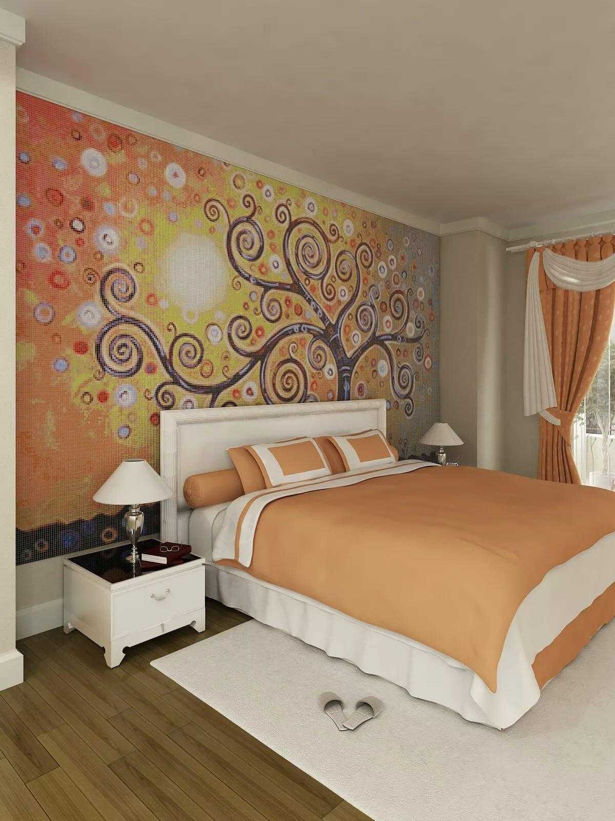 - Фотообоям на одной стене, особенно в стиле 3D, которые оживят спальню, зрительно скорректируют ее размеры и придадут особую изюминку спальне.