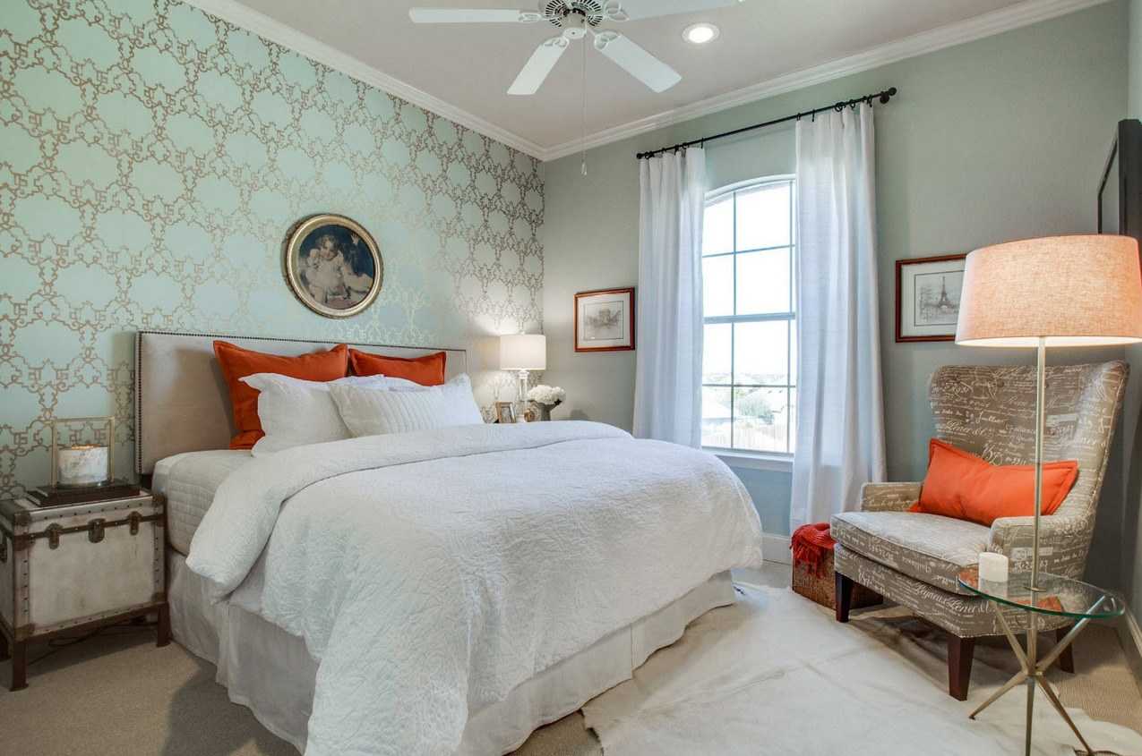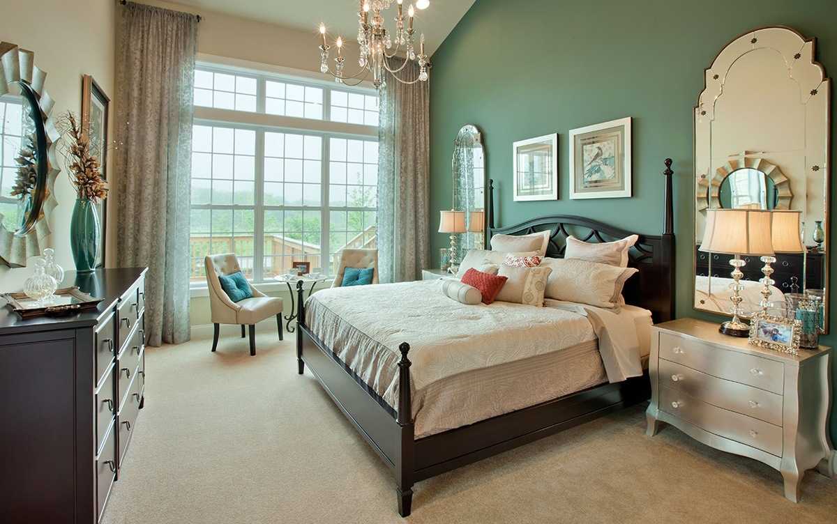 Эти цвета — лучший выбор для спальни в романтическом, винтажном или колониальном стиле. Вся стена может быть бирюзовой, но также это может быть покрывало или шторы. В сочетании с черными вставками белый и бирюзовый станут хорошим фоном для шикарной спальни.