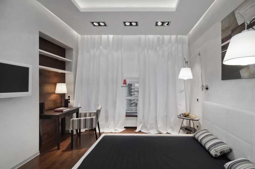 Для маленького помещения лучше предпочесть не кровать, а трансформирующуюся мебель: раскладной диван-кровать, кресло-кровать, откидную конструкцию.