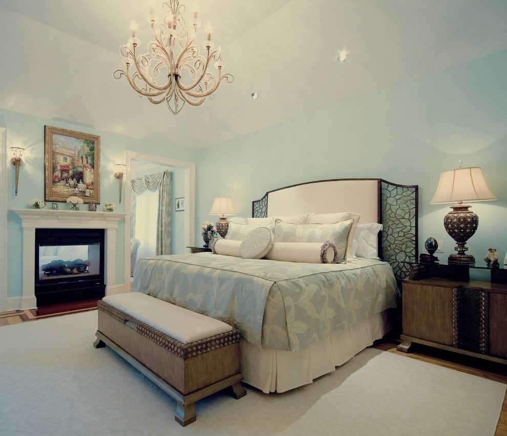 К сочетанию синего и белого идеально подойдет любой коричневый или бежевый. И если вы мечтаете о спальне в стиле гламур в бело-голубых тонах — тоже получится. Поэтому трудно не заметить, что синий — один из самых универсальных вариантов цвета для спальни.