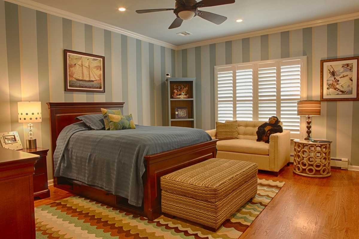 - Горизонтальные же полосы на обоях смогут визуально расширить комнату, но внешне потолок будет казаться намного ниже.