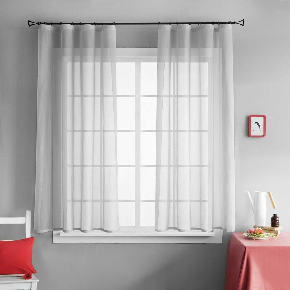 - Легкие прозрачные занавески хорошо смотрятся со струнными и тонкими металлическими системами.