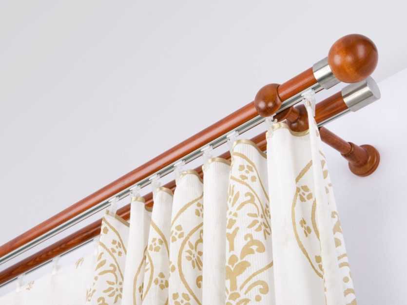 - Для тяжелых портьер используют прочные штанговые карнизы из металла или дерева. Пластиковые могут прогнуться.