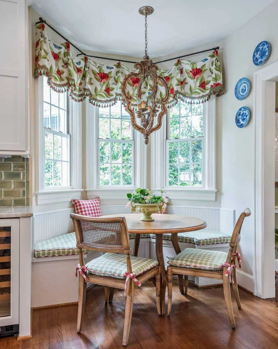 Атласные и шелковые шторы, конечно, выглядят роскошно, как и гардины из тафты, но с точки зрения практического использования на кухню они просто не подойдут. Любая капля жидкости или жира, оставит след на нежной поверхности этих тканей. Так что приберегите их для спальни или гостиной. Хотя, если ваша кухня служит только для того, чтобы выпить чашку утреннего кофе, то вы можете рискнуть и все же украсить интерьер шелком или тафтой.