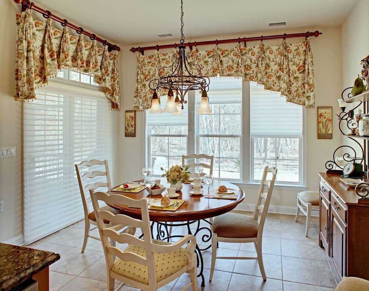 Стоит отметить, что при помощи простой регуляции длины карниза, возможно нивелировать те или иные недостатки кухонного окна любого размера.