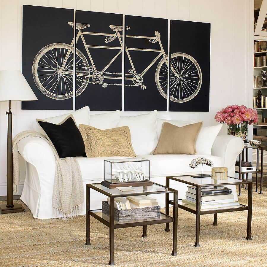 - вешая картины над диваном, отступайте от спинки не более 20-30 см;