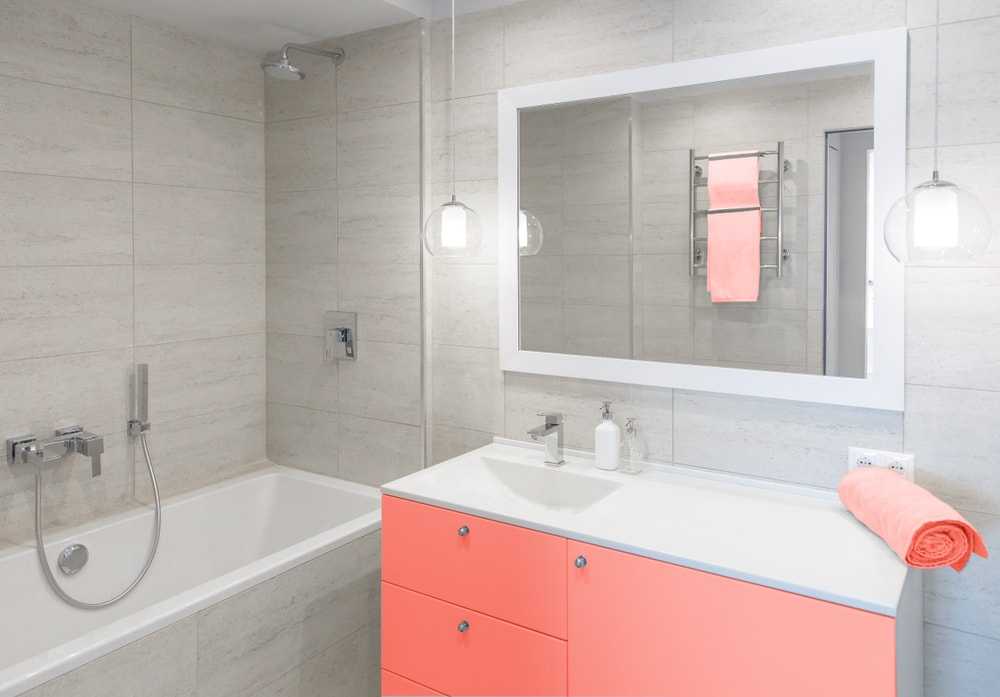 Теплый, солнечный, слегка женственный характер придаст ванной комнате сочетание кораллового с мягкими вариантами розового и оранжевого. Эти радостные цветовые композиции, напоминающие летние рассветы и закаты, являются отличным решением, особенно для небольших ванных комнат, которые получают небольшое количество естественного света.