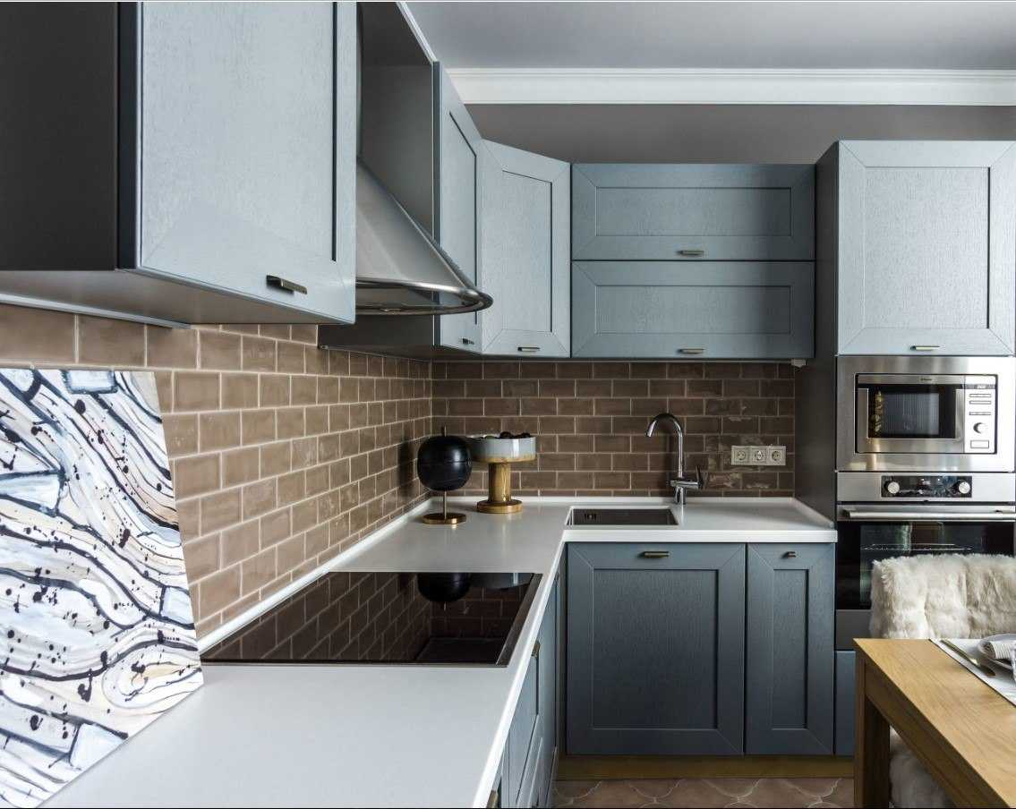Коричнево-голубая кухня в нежных пастельных тонах